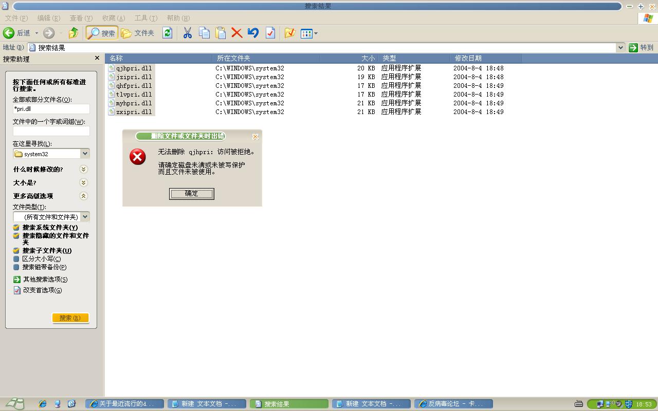 安全模式里试试,或者用ICESWORD,或者用UNLOCKER