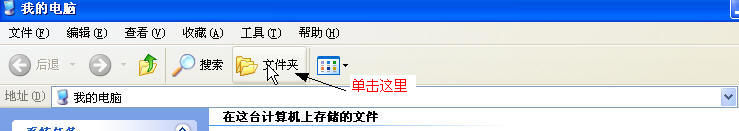打开我的电脑  点击菜单栏下方的 文件夹按钮(搜索右边的按钮)