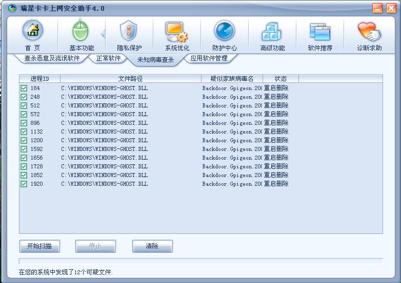 瑞星卡卡安全论坛技术交流区反病毒/反流氓软件论坛 急!!~用卡卡查出的未知病毒!!清除不掉!【求助】