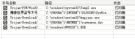 【原创 魔兽盗号木马和其它几个木马,求杀???
