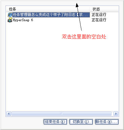 不知道感染了什么病毒了,任务管理器的所有控制键都不见了,只有一个方框和里面的进程等内容,可是却无法关闭任务管理器了,只能使用alt+F4才能关闭,请问是怎么回事呀,附日至: