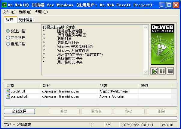 今天用drweb查,报了两个瑞星病毒,大家帮忙看看。
