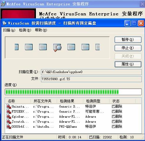 每个分区都自动生成一个auto.exe隐藏文件,已经被我手工删除了,并且我在组策略里把自动播放给关闭了,用麦咖啡杀毒发现这样几个病毒。
