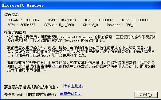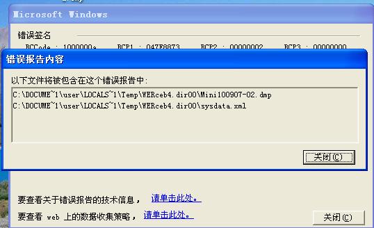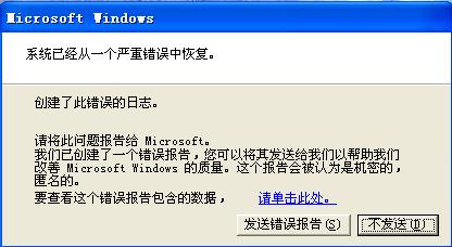 我把以上对话框点击“关闭”关掉回到第一张图,点击“发送错误报告”竟然发送成功(当时我没有拨号上网,没有连接到网络的)。