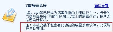 是瑞星2008自带的u盘免疫功能禁用的
