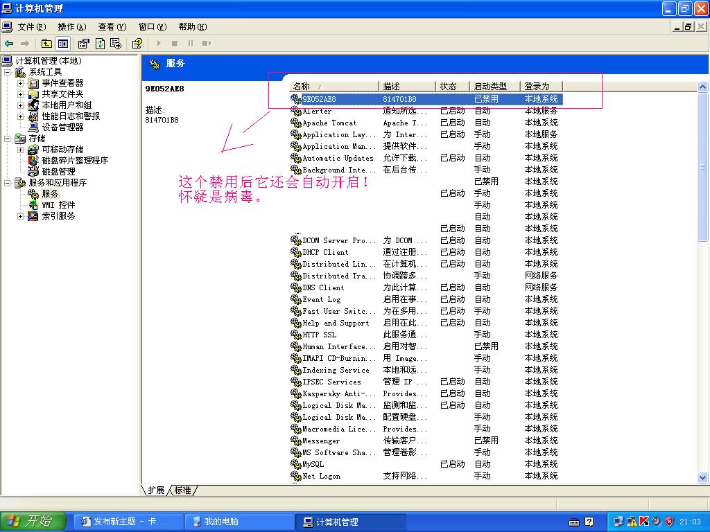 还有这个图,我是做JAVA编程的,所以机器好多东西,这次做系统我就删了可多重要文件,自己还要从闹.但是我自己对病毒和黑客基本算个白痴,哪位高手帮我看一下我万分感谢.