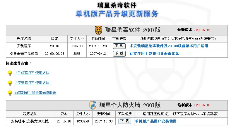 下来的"引导杀毒光盘映像"究竟是哪个版本呀?这里http://update.rising.com.cn/register/pcver/UpdateIndex.asp明明写的是20.00.00.06版本 文件大小38MB  更新日期为2007-9-12 !下来后怎么是30.1MB,刻盘使用时显示为2006年19.06版!试问19.06版现在还能查杀哪些病毒???简直就是浪费我的空白光盘和查杀时间!麻烦各位版主审核一下,报给有关人员!希望尽快更新!!!!!!!!!!