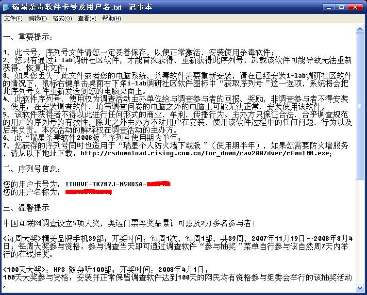 图片上这套是我刷的,以前瑞星就有这个活动了,不过还是希望大家认真填写