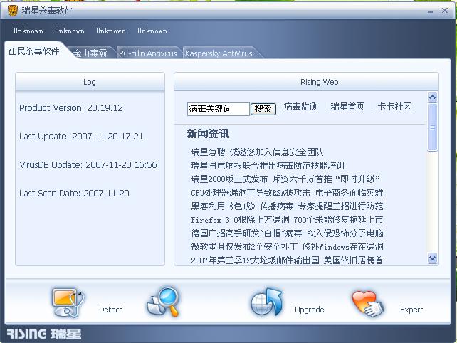 我昨天刚更新了瑞星,安装好之后居然杀毒软件显示"所有监控已禁止"!还有怎么杀毒软件的对话框显示的有江民杀毒什么的,还半英文半中文的,不懂了,快帮帮我看看怎么回事啊???