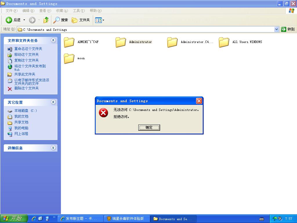 瑞星卡卡安全论坛技术交流区反病毒/反流氓软件论坛 无法访问C:\Documents and Settings\Administrator拒绝访问