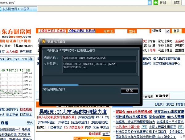 前几日,办公室的电脑中了 Hack.Exploit.Script.JS.Realplayer.b 和