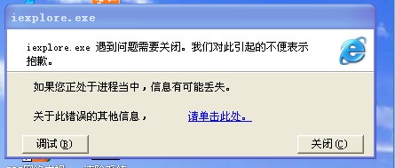 我的机子总是在浏览网页的时候出现iexpore.exe遇到问题需要关闭。我们对此引起的不便表示抱歉,下面是,调试,关闭,一点关闭,所有的网页都会关闭。