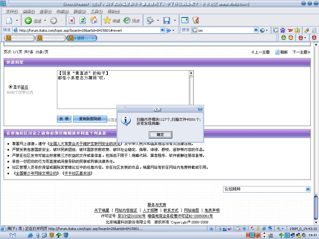 瑞星卡卡安全论坛技术交流区反病毒/反流氓软件论坛 您好,高手我的瑞星和卡卡都被锁死了。中了什么病毒呢?