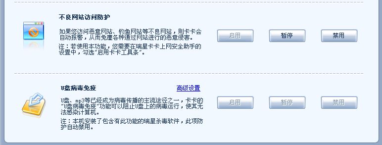 其中 U盘病毒防护按键从装好就是灰色的!