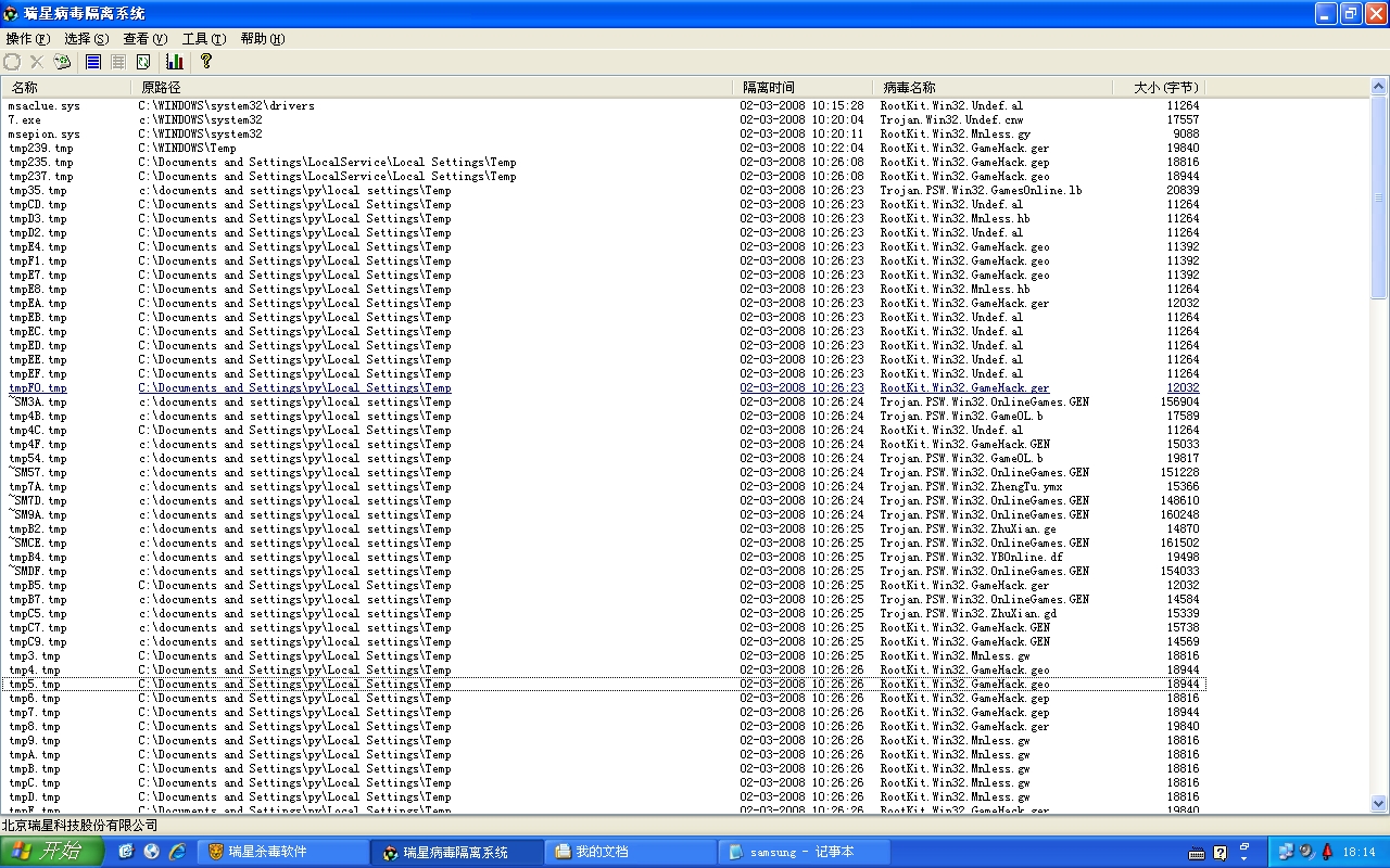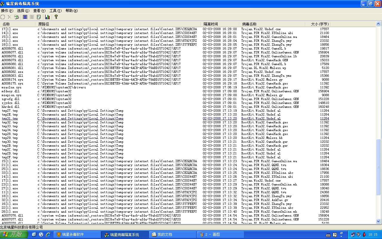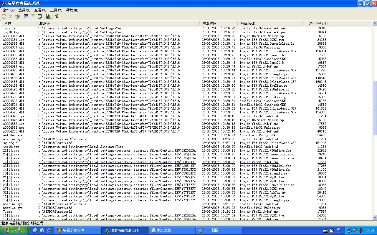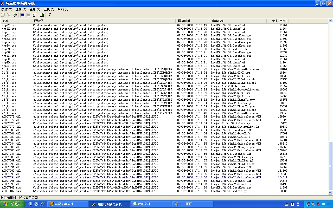 我把用瑞星查杀的结果截下来了`