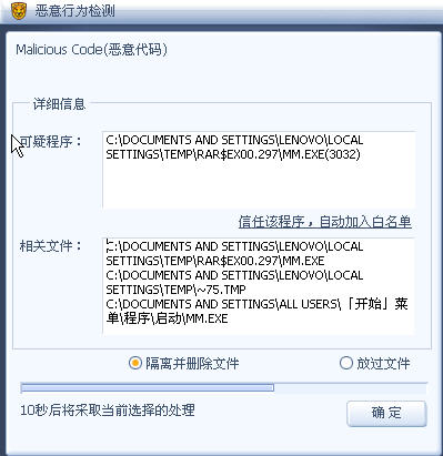 瑞星20.31.50的“恶意行为检测”发现并挡住了这只狗。