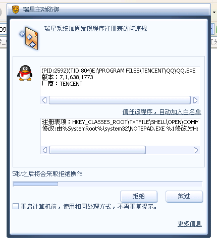 运行QQ老是提示这个的,是不是中毒了?