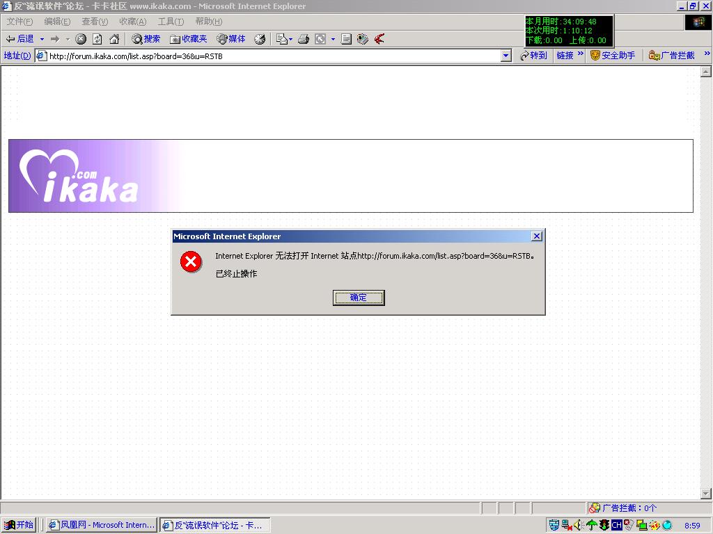 弹出信息框:IE 无法打开某站点,操作已终止。请高手看一眼该怎解决。谢了先!!!