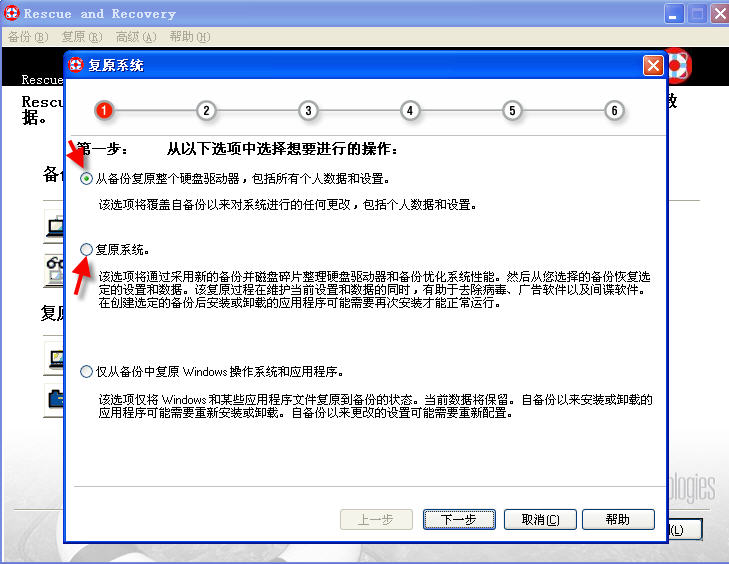 如果做过系统备份,可以用备份恢复系统。详见下图(选择其中一个恢复方式即可):