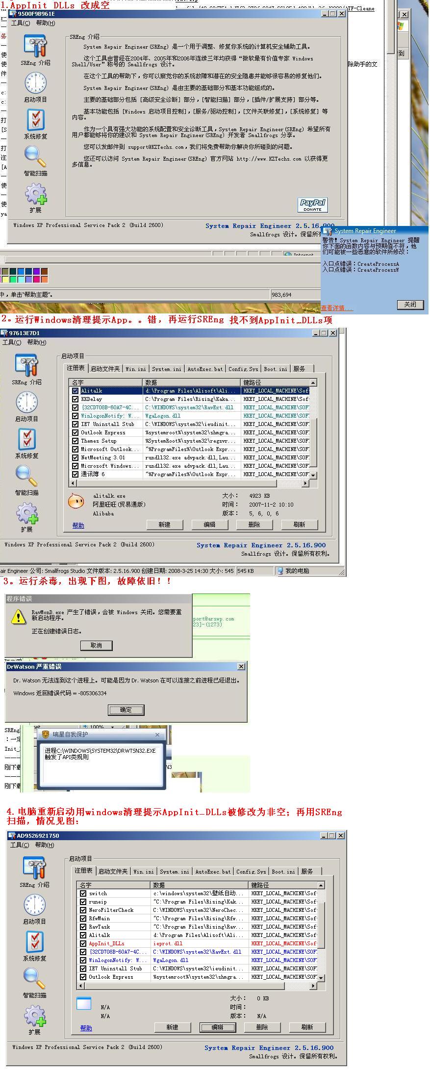 打开SREngPS.EXE,选择【启动项目】-【注册表】,编辑以下项,将其值改为空: