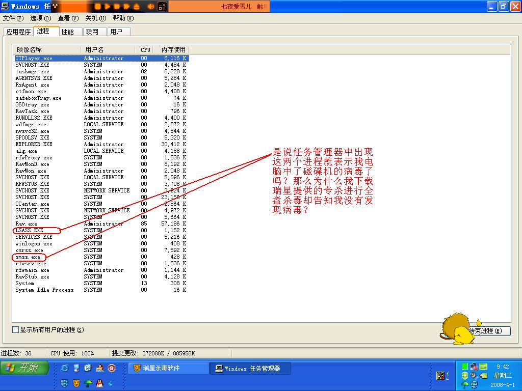 朋友家的电脑现在不能上网了,管理器中出现的那两个进程是表示他的电脑中磁碟机了吗?但是管理器中出现的那两个进程并不像网站上说的各两个,只是各一个。电脑会有蓝屏出现,但是其他感染磁碟机的症状并没有出现在朋友家的电脑上。