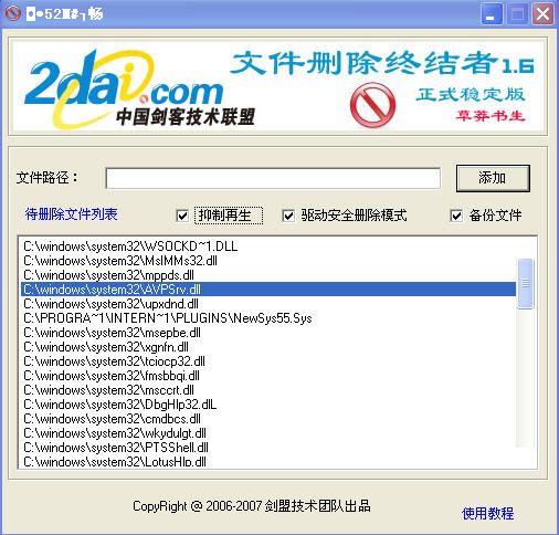 2、将下列文件复制到剪贴板,导入XDELBOX的“待删除文件列表”,用XDELBOX删除下列文件(操作例见图2):