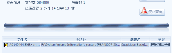 杀毒发现该病毒,但在F盘却找不到该文件