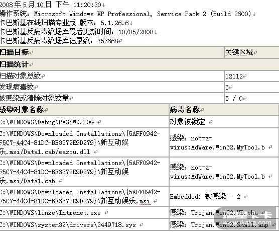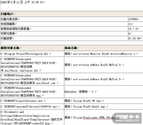 看看这是卡巴刚才在线查毒情况 按照3楼说的这些就不是病毒吗