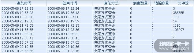 这是我的瑞星杀毒历史记录 包括昨天卡巴查毒过后用瑞星杀毒的记录