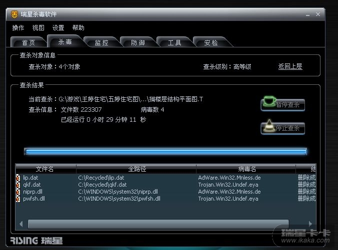 瑞星卡卡安全论坛技术交流区反病毒/反流氓软件论坛 中了Trojan.Win32.Undef.eya这个了,杀不掉