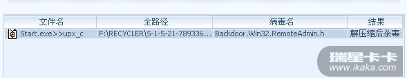 下载个祖玛合集游戏结果用瑞星查出来个Backdoor.Win32.RemoteAdmin.h 病毒,怎么样也杀不掉,我就把游戏卸载掉并且把快捷方式丢到回收站里了,可是查了一遍毒,又跑到回收站里了,把回收站清空了,再查一遍还在,并且无法清除..请问有什么办法可以杀掉??