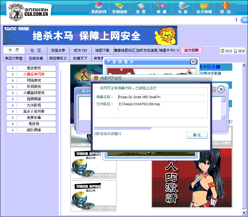 至2008.7.27,0:59瑞星20.54.52报告浩方4.8.3.530(sp2)广告含有病毒代码。