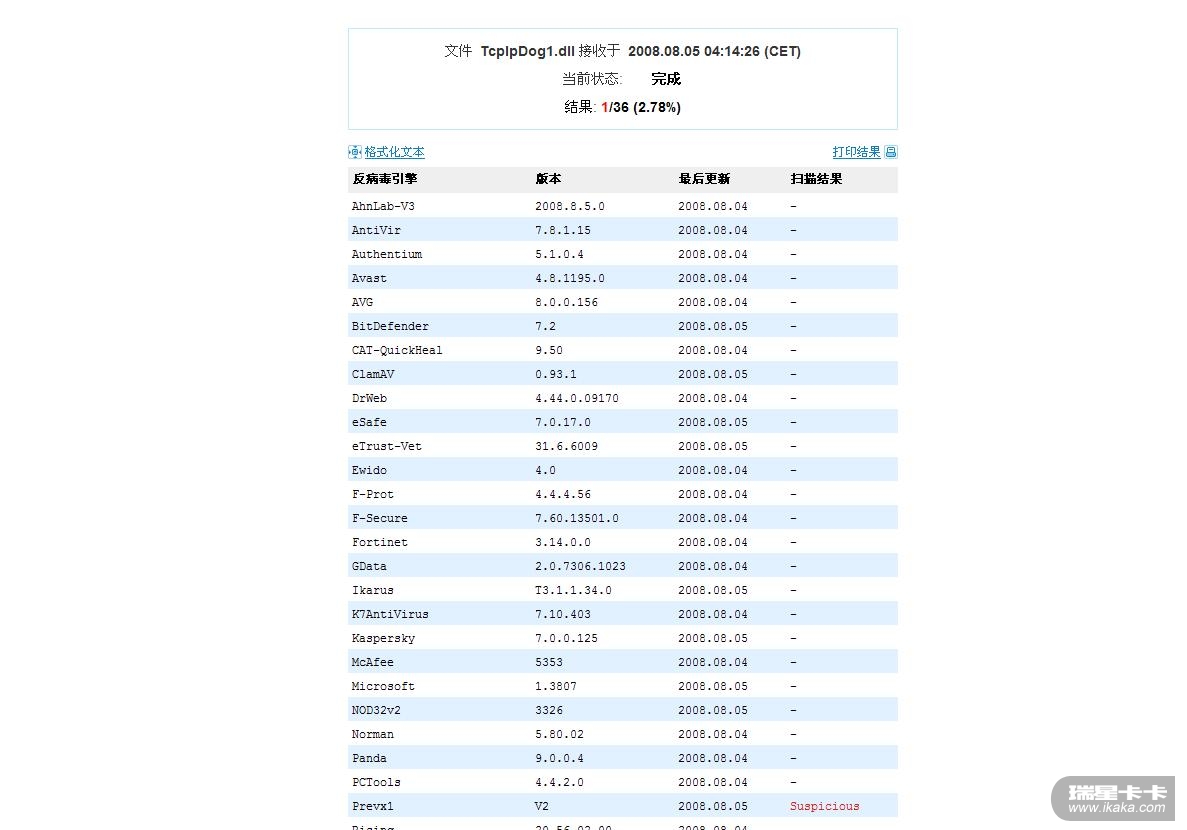tcpipdog1.dll这个也用不着删吧,只有一个说有可疑,其他的都检测没问题的