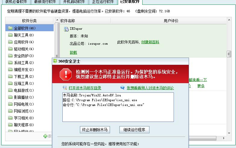 回复:怎样卸载IESuper,一点卸载就报木马