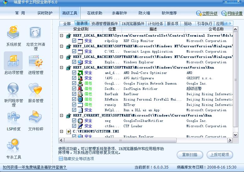 2.删除重启后使用SREng修复下面各项: 启动项目 -- 服务 -- Win32服务应用程序之如下项禁用: