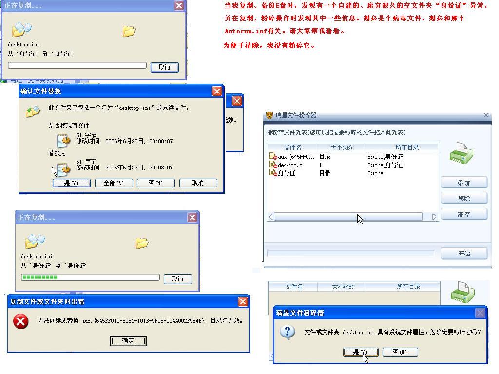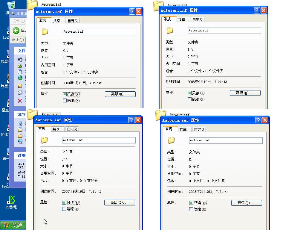 我新买的120G移动硬盘,挂上机后,就出现了一个AUTOrun.inf文件夹,经分区、格式化,尔后再挂上机,竟每个分区都出现了一个这样的文件夹。
