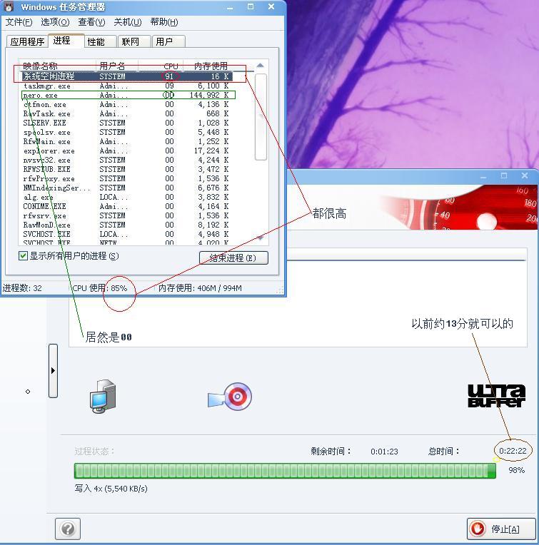 空闲进程无法调整优先级,nero在运行时系统默认已经是最高了