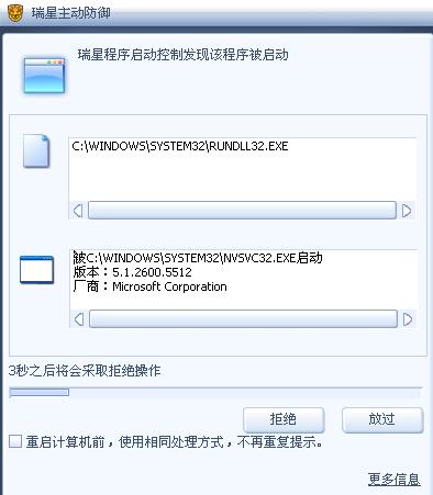 我按照瑞星有篇关于主动防御的指点,将有的敏感程序设定了被启动时询问。