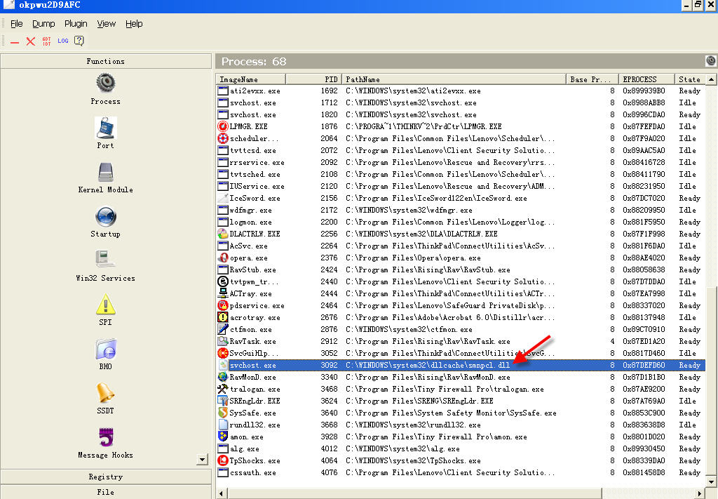 svchost.exe只是病毒进程名,此进程的实质内容是C:\windows\system32\dllcache\smncpl.dll