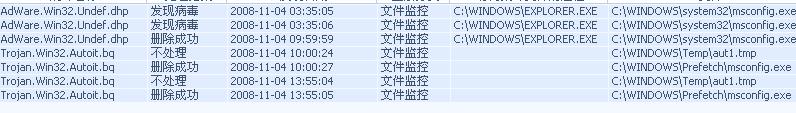 当第三次重起就出现aut1.tmp 好像他也感染了msconfig.exe 有system32目录下的有PERFETCH目录的