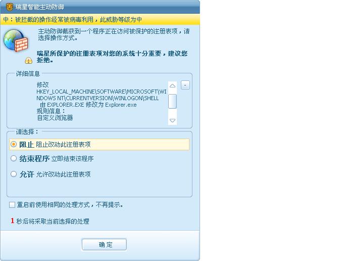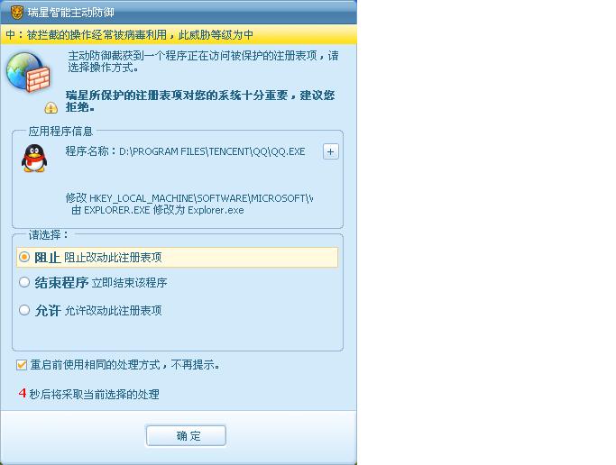 回复: 求助:QQ启动时瑞星提示被修改注册表!