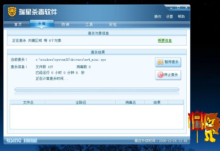 瑞星在12月24号升级,然后它提醒重新启动电脑,更新完的电脑如图片所示