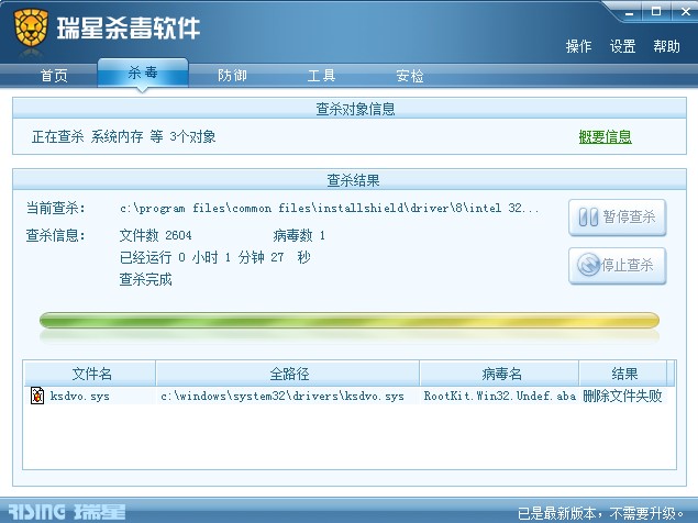 瑞星2009版查杀引擎测试