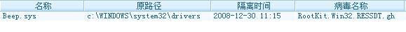 瑞星文件监控报警:RootKit.Win32.RESSDT.gh