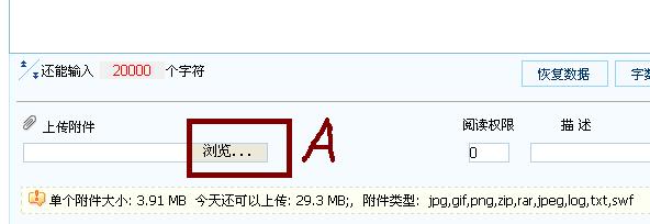 点下图A处的按钮,找到图片文件后点“打开”,之后再发表帖子。