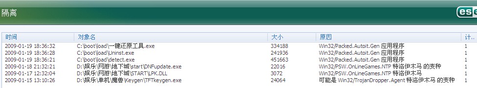 2009-01-18 21:32:29 文件系统实时防护 文件 D:\娱乐\网游\地下城\start\DNFupdate.exe Win32/PSW.OnLineGames.NTP 特洛伊木马 的变种 通过删除清除 - 已隔离 NT AUTHORITY\SYSTEM 在被应用程序修改的文件上发生事件: C:\Program Files\Rising\Rav\ScanFrm.exe.