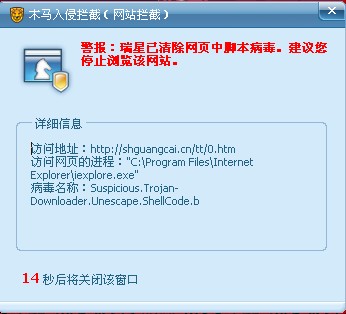 用IE 6 不管是开什么网站瑞星都提示病毒 如上图