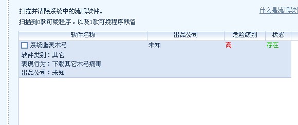 没写路径,就写了名称“系统幽灵木马:危险程度 高 作用 下载其他木马 然后还有个出品公司,