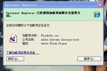 问题的起始是:昨天提示说有什么漏洞,是否要修复,我点了“是”后进行修补,今天网络上的在线游戏就不能玩了,一点开,就说是有什么加载项阻止了,一关游戏的网页,所有的网页同时也关闭了。