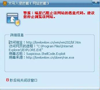 但是,如果浏览任何网页都会出现此报毒提示,那么就有arp病毒攻击欺骗的情况,某些病毒利用ARP欺骗等手段,在用户收到的网络数据包中自动插入iframe代码,代码指向利用MS07-017漏洞的网址。使得中毒用户,以及局域网中受到此中毒电脑的欺骗攻击的用户,在上任意网站的时候,均会出现脚本病毒或网页木马的报警。针对这种情况,建议您首先把补丁打上,其次核实如果是自己的电脑中了毒,应及时清空IE临时目录,升级杀毒;如果是别人的电脑中毒后攻击自己,则下载第三方抓包工具,查找病毒源,找到毒源后,使用瑞星听诊器扫描并上报扫描结果。